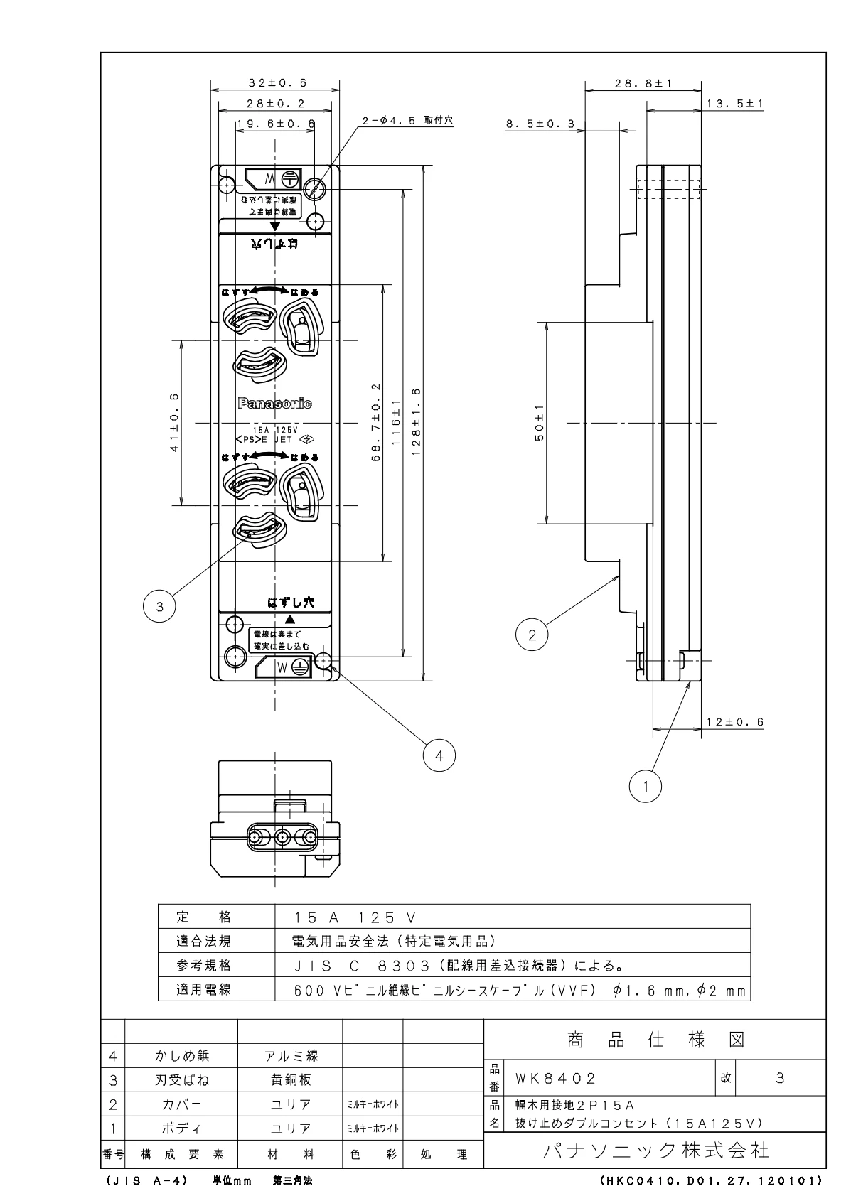 - 電設資材 > パナソニック(Panasonic) > フルカラー配線器具 > コンセント