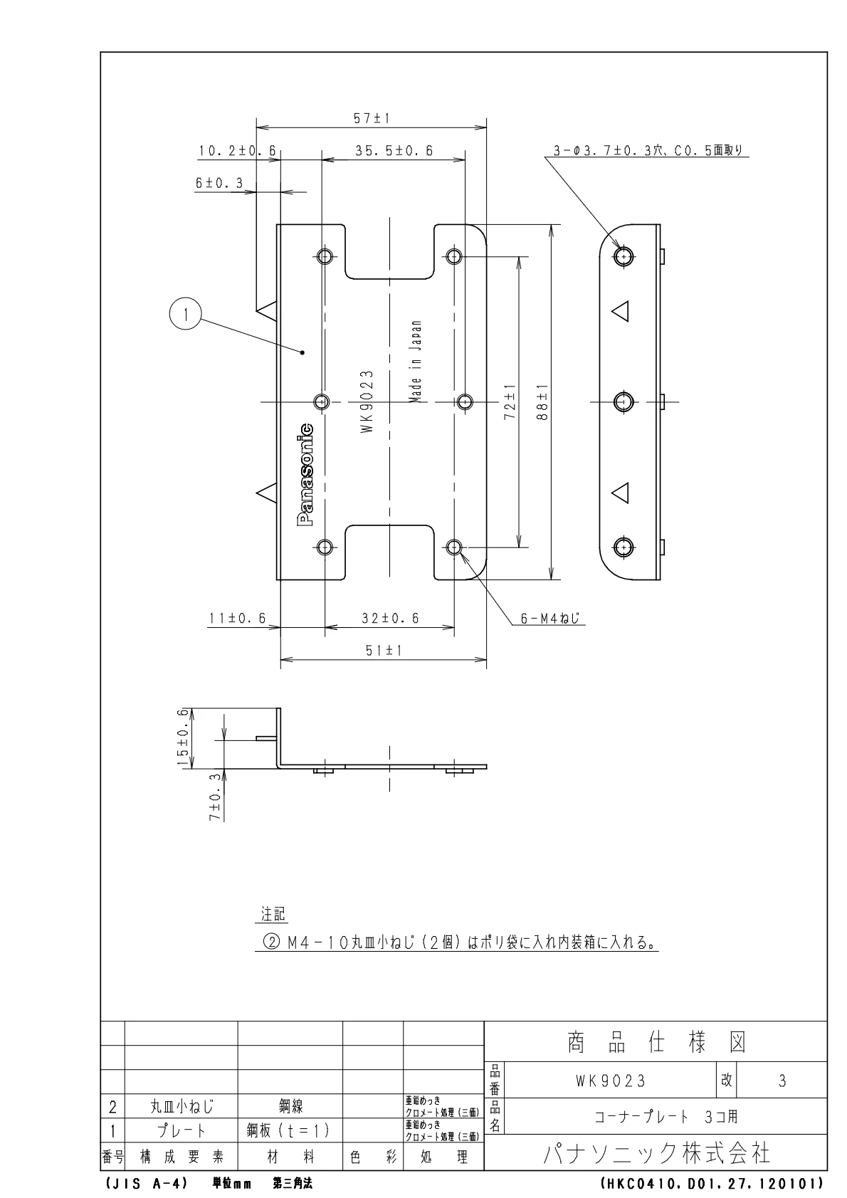 品番:WK9023品名:コーナープレート3コ用