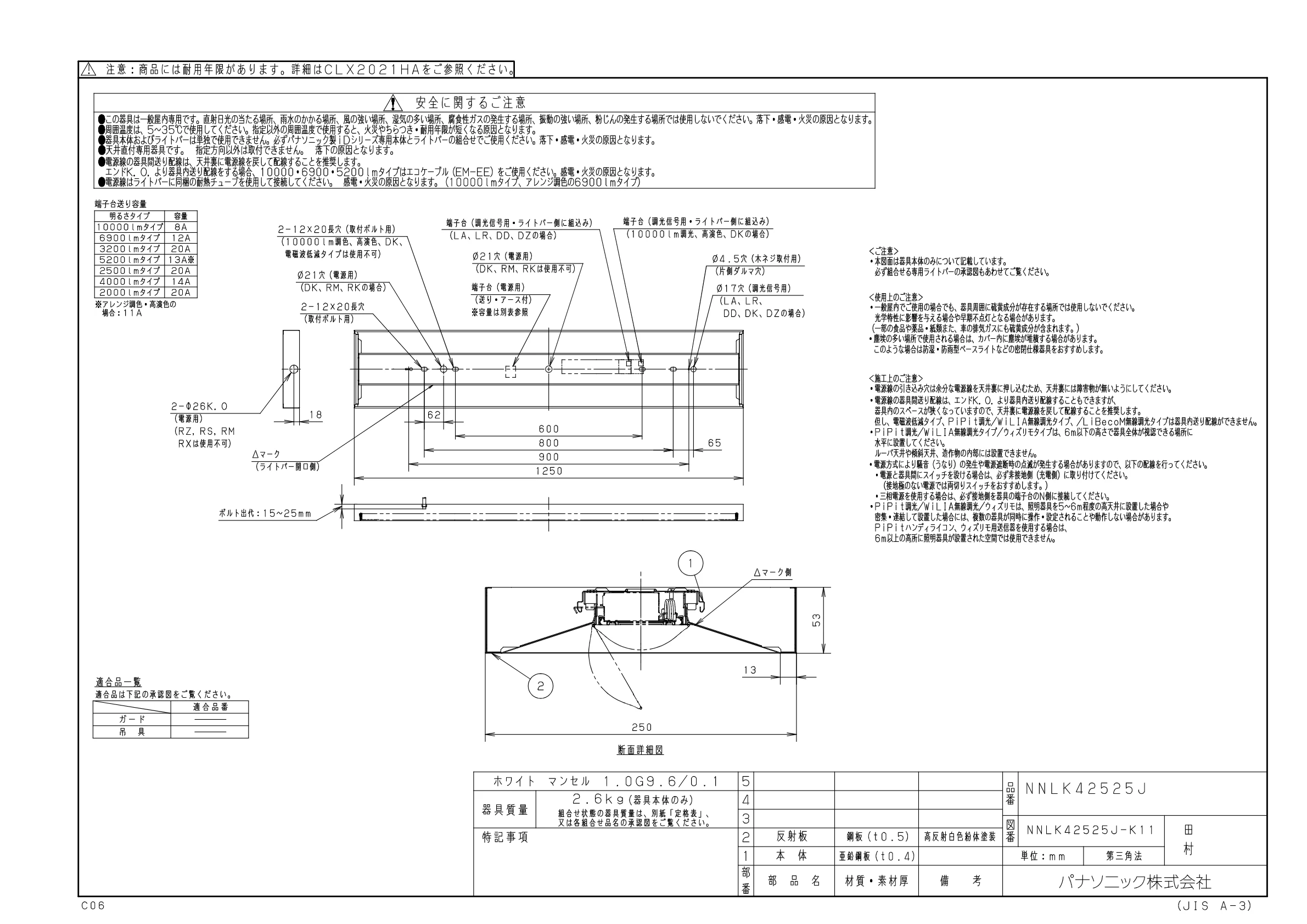 ◆注)一般屋内用器具です。屋外環境(軒下など半屋外を含む)や腐食性ガスの発生する場所、太陽の光が直接器具に当たる場所では使用できません。