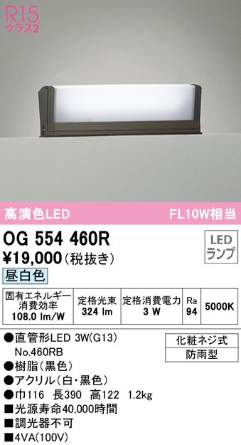 OG554460R 門柱灯 FL10W相当 非調光・昼白色