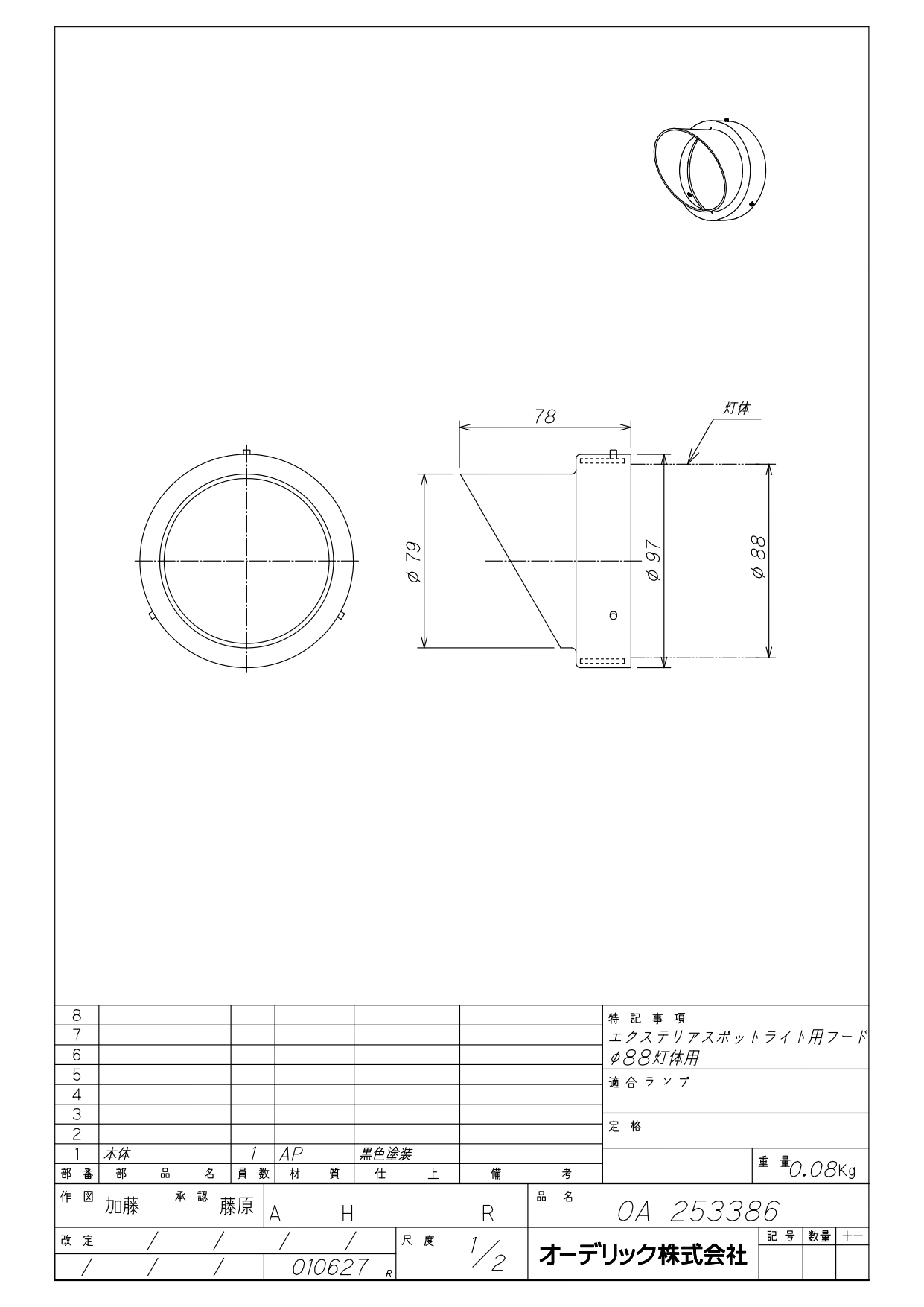 OA253386 フード 屋外用スポットライトφ88灯体用 色:ブラック
