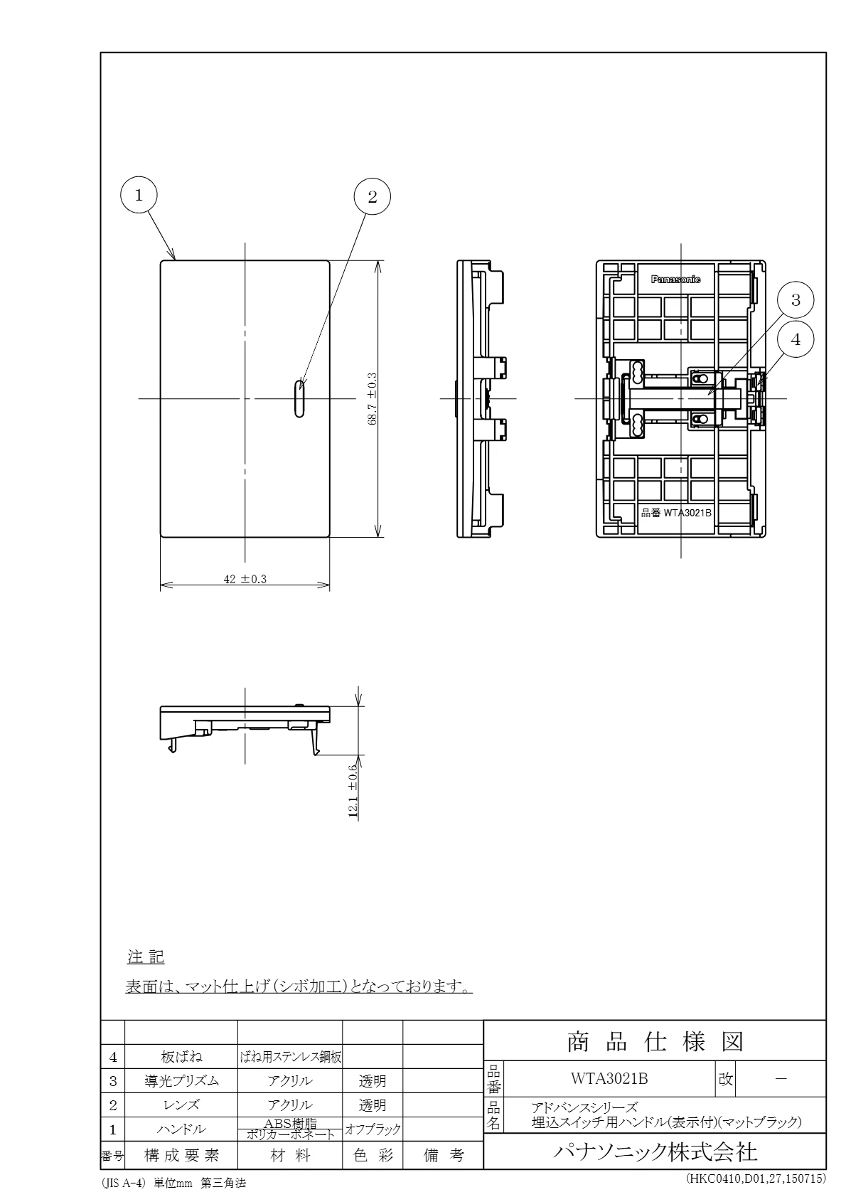 品番:WTA3021B品名:アドバンスシリーズ埋込スイッチ用ハンドル(表示付)(マットブラック)