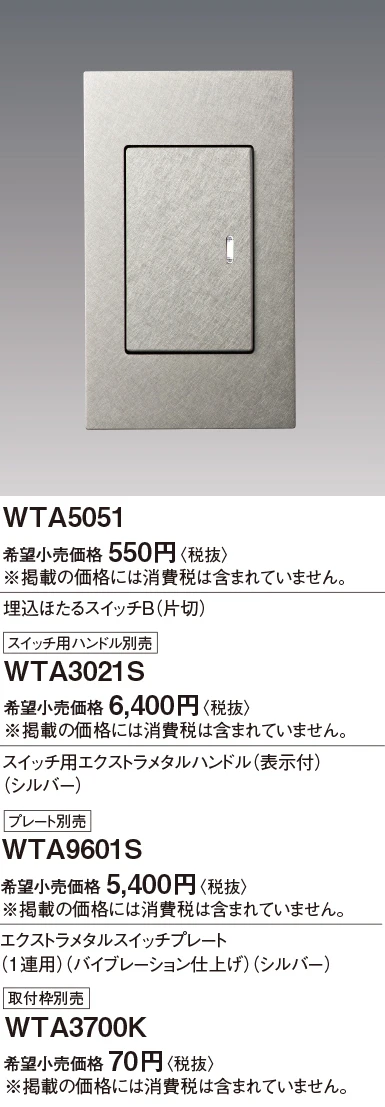 WTA3021S アドバンスシリーズ 埋込スイッチ用エクストラメタルハンドル(表示付)(バイブレーション仕上げ)(シルバー)