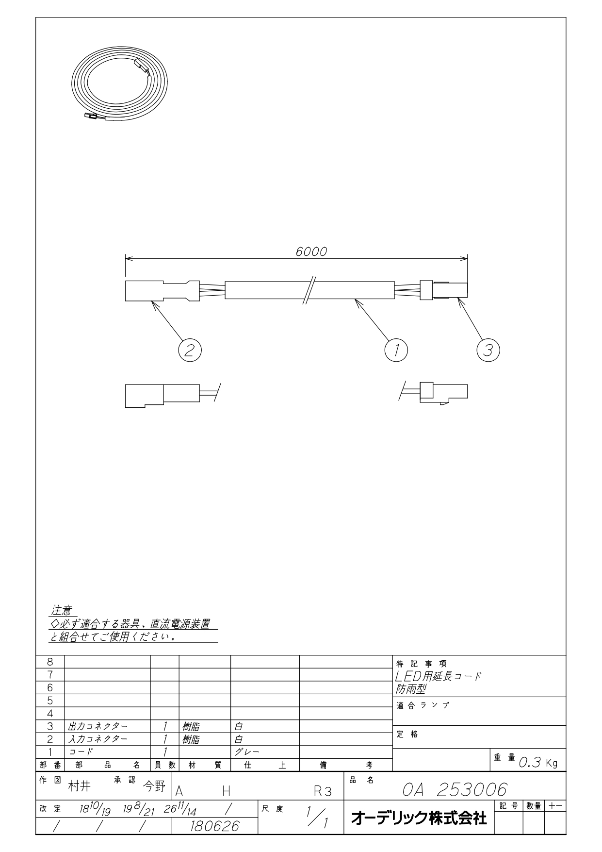 - 照明器具 > オーデリック(ODELIC) > オプション品 > 電線・ケーブル・信号線 > 延長ケーブル