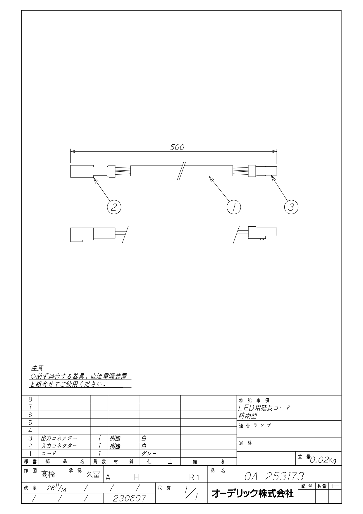 OA253173 延長ケーブル(0.5m) 間接照明用