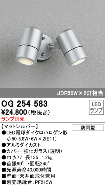 屋外用スポットライト フレンジ型 ダイクロハロゲン(JDR)50Wx2相当 ランプ別売
