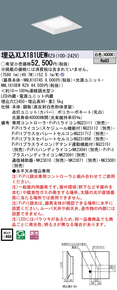 - 照明器具 > 東芝ライテック > 別売LEDバー(スクエア用) > 埋込型□600用