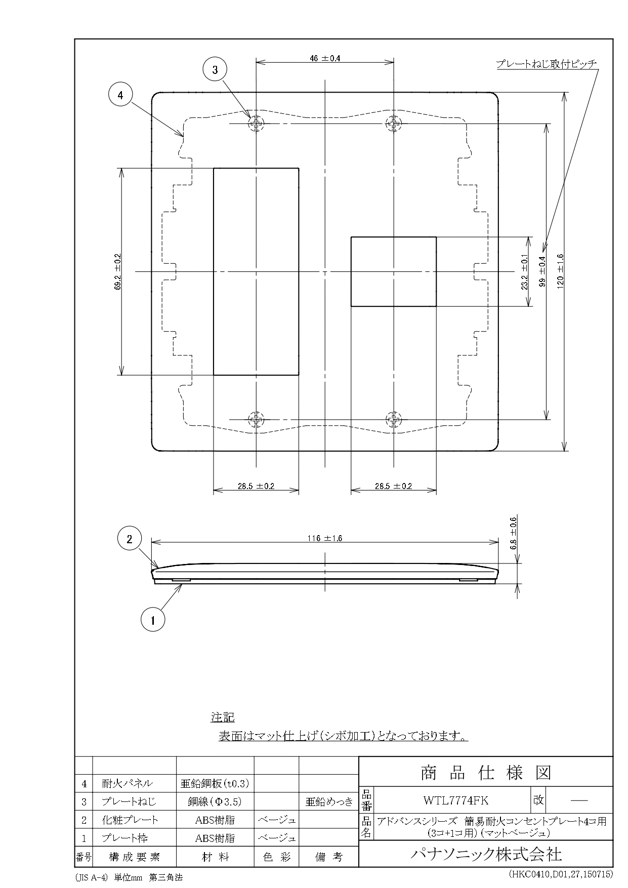 - 電設資材 > パナソニック(Panasonic) > アドバンスシリーズ > コンセントプレート > 簡易耐火1-4コ用