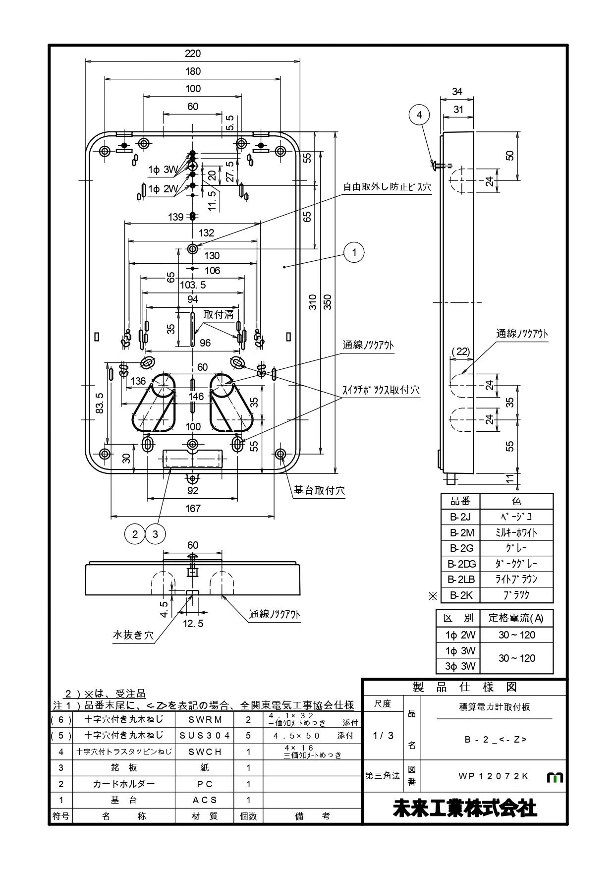 B-2J 積算電力計取付板 <カードホルダー付>自己消化性樹脂製 B-2型 ベージュ