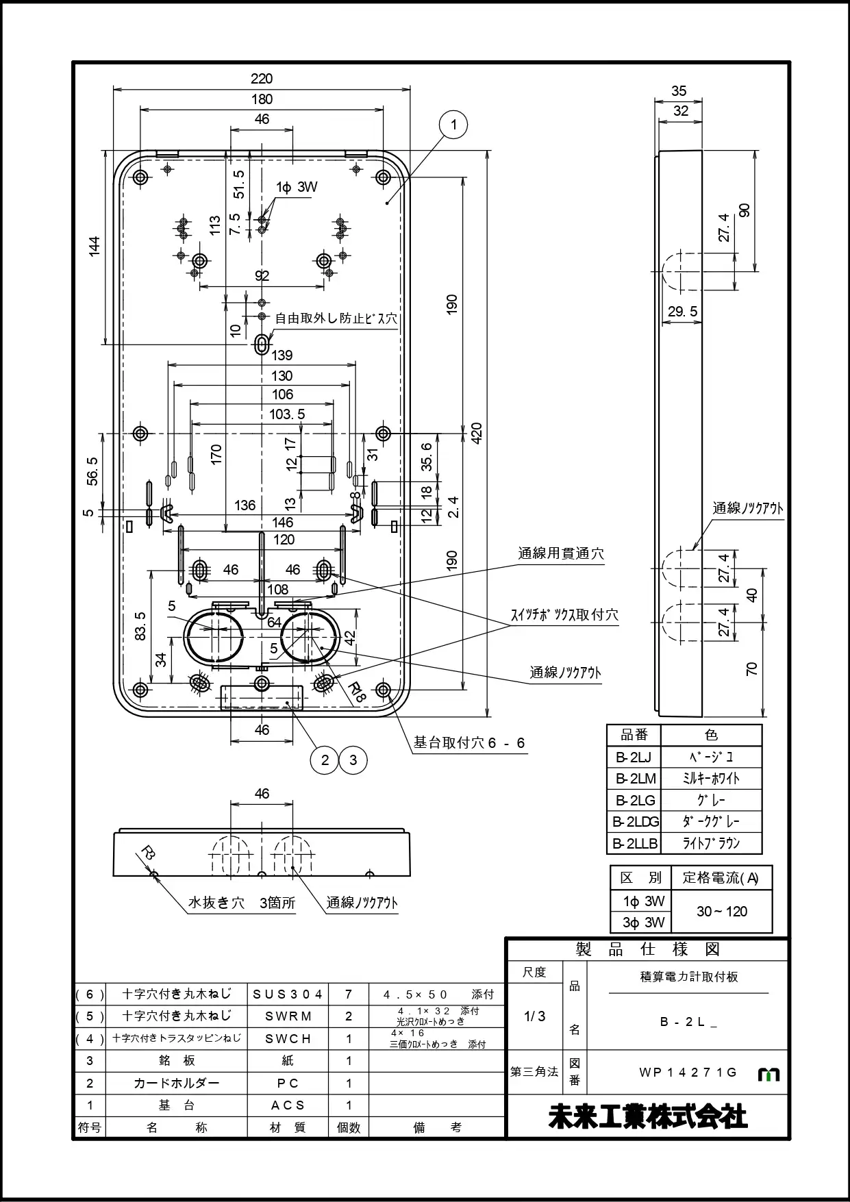 B-2LJ 積算電力計取付板 <カードホルダー付>自己消化性樹脂製 B-2L型 ベージュ