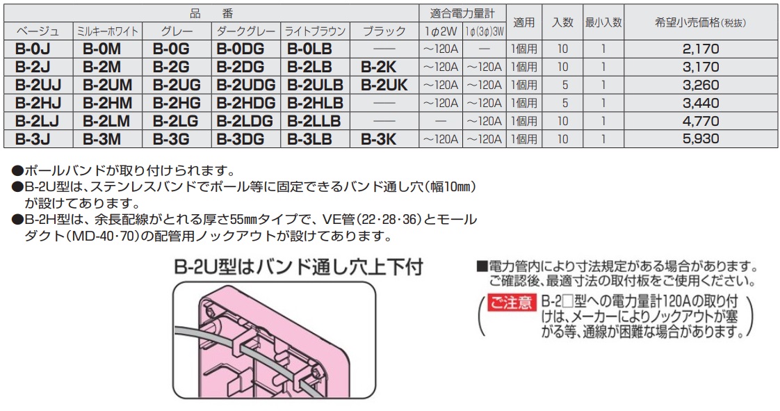 品名:積算電力計取付板 <カードホルダー付>自己消化性樹脂製 B-2L型 グレー