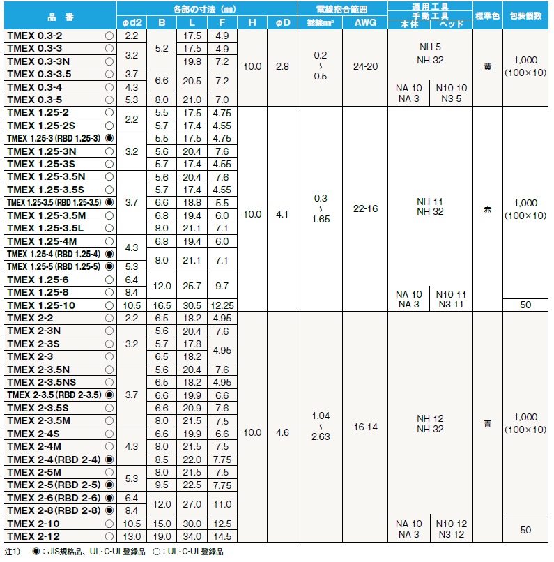 - 電気資材 > 圧着端子・スリーブ > 環境配慮形TMEXシリーズ > 丸形(0.3)