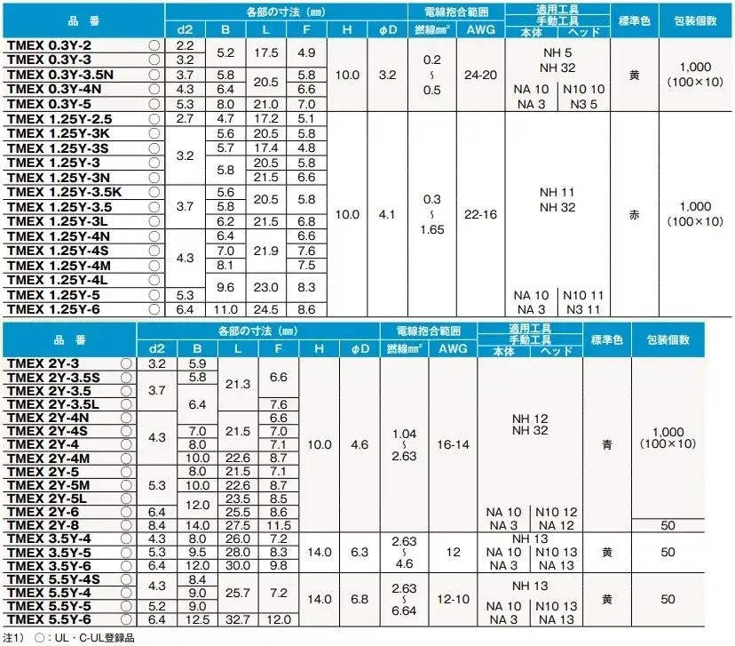 - 電気資材 > 圧着端子・スリーブ > 環境配慮形TMEXシリーズ > 先開形(0.3)