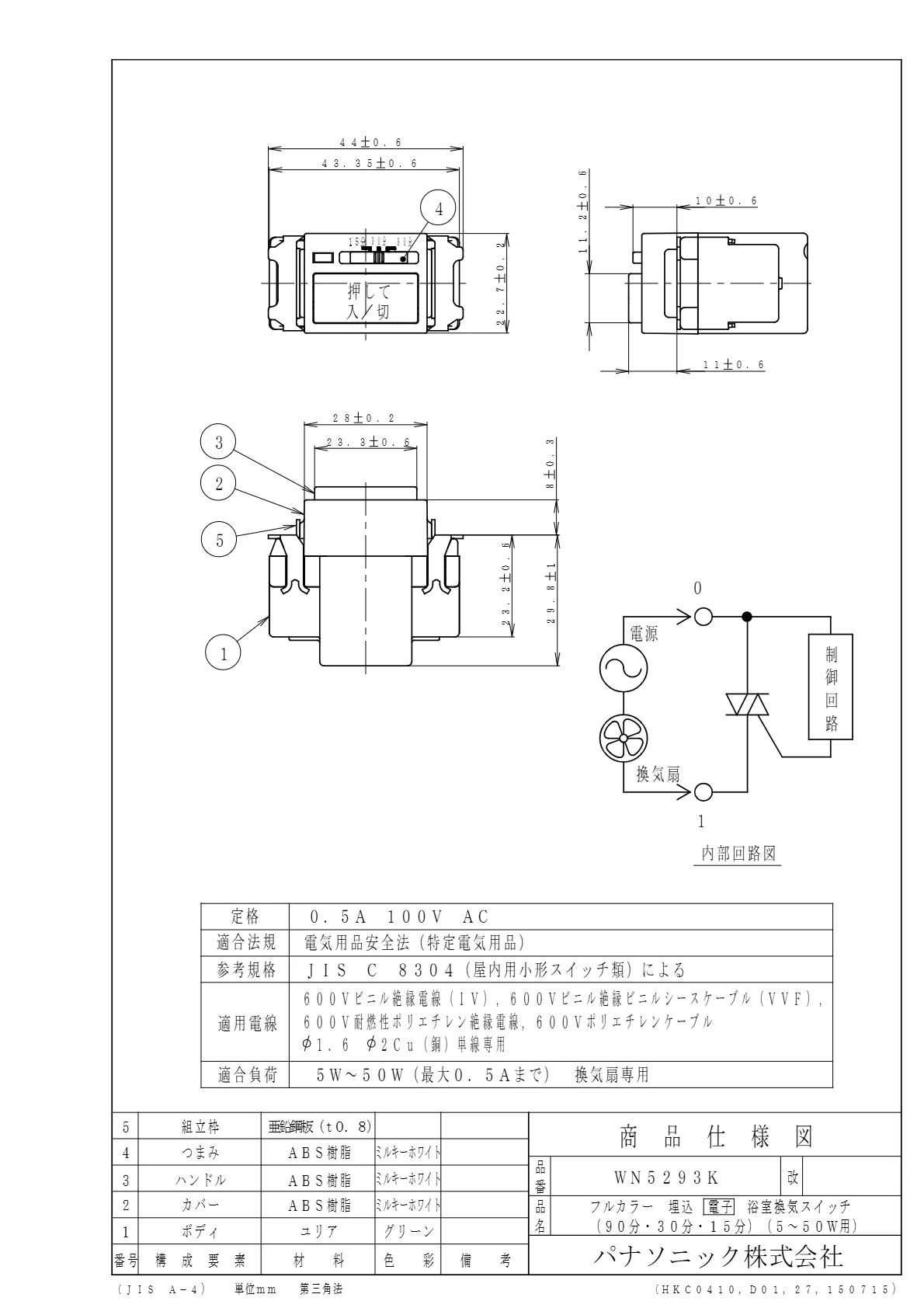 - 電設資材 > パナソニック(Panasonic) > フルカラー配線器具 > スイッチ > 浴室換気スイッチ