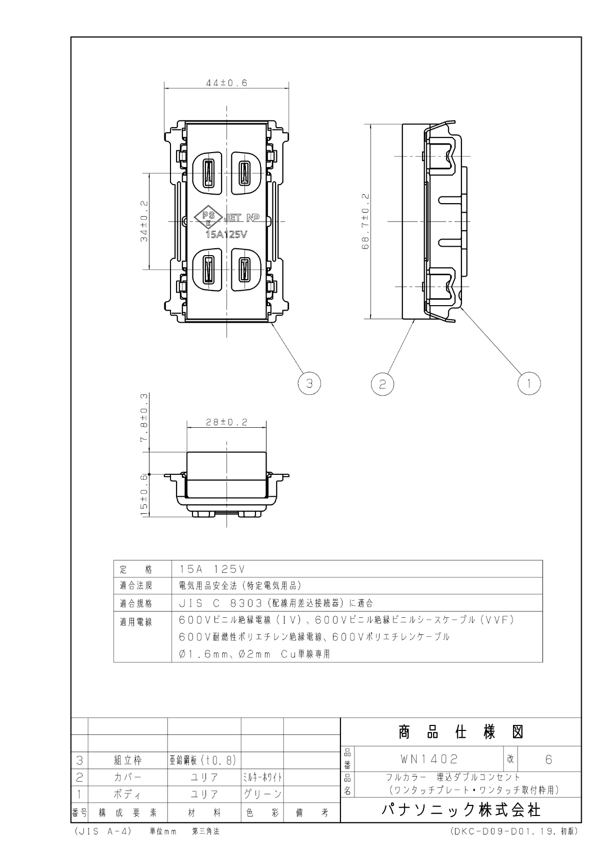 品番:WN1402埋込ダブルコンセント
