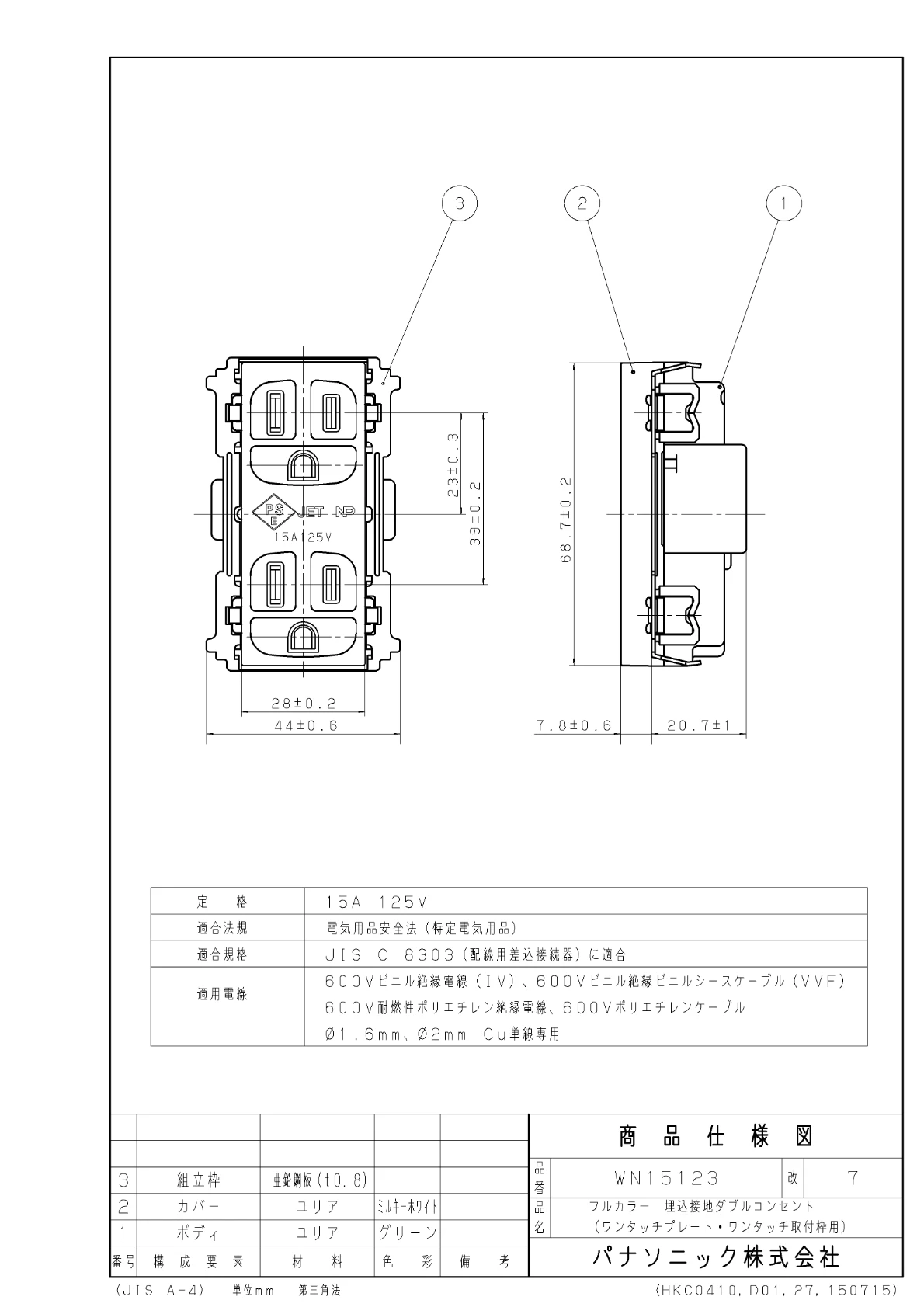 品番:WN15123埋込ダブルコンセント
