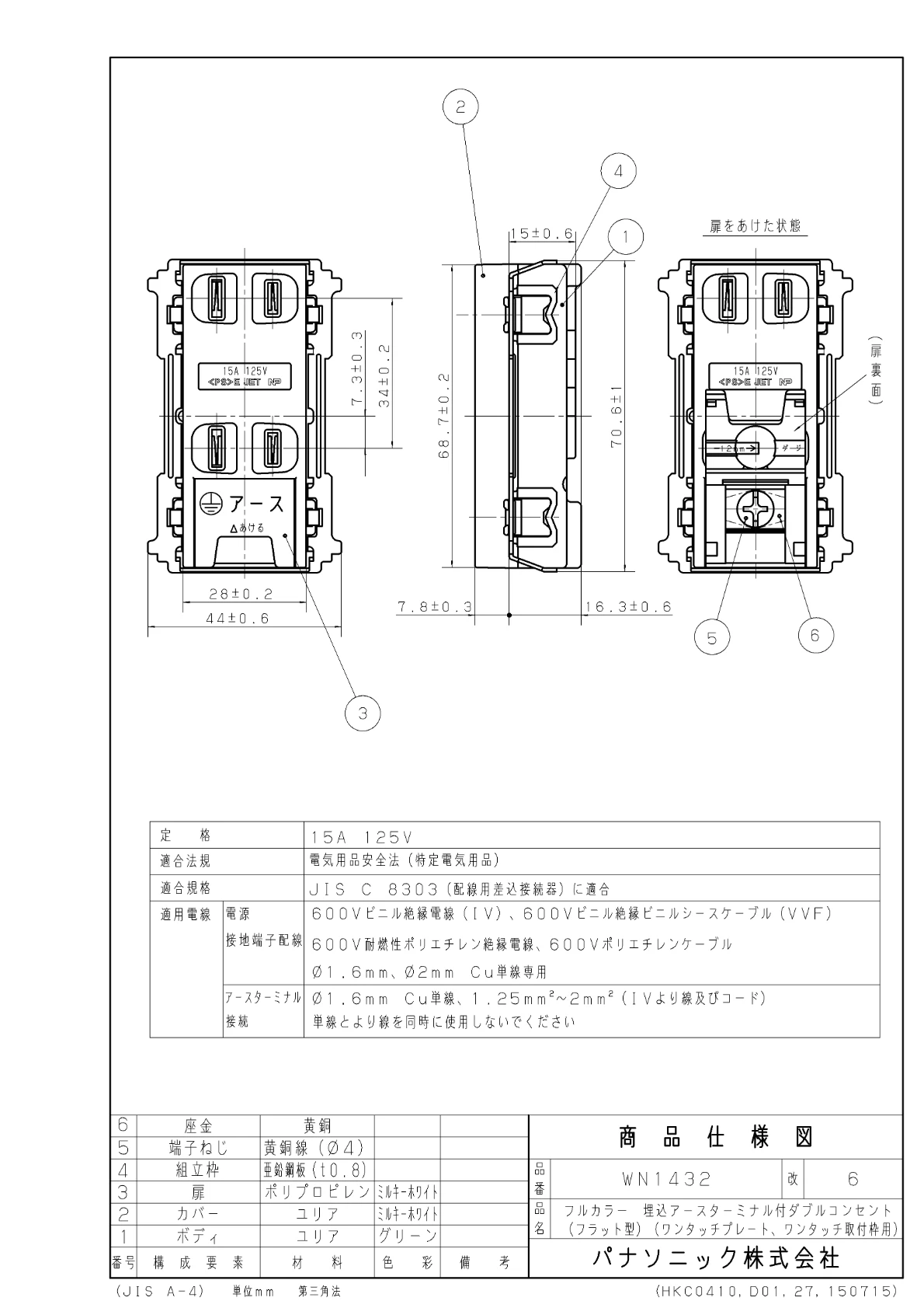 - 電設資材 > パナソニック(Panasonic) > フルカラー配線器具 > コンセント > アースターミナル付