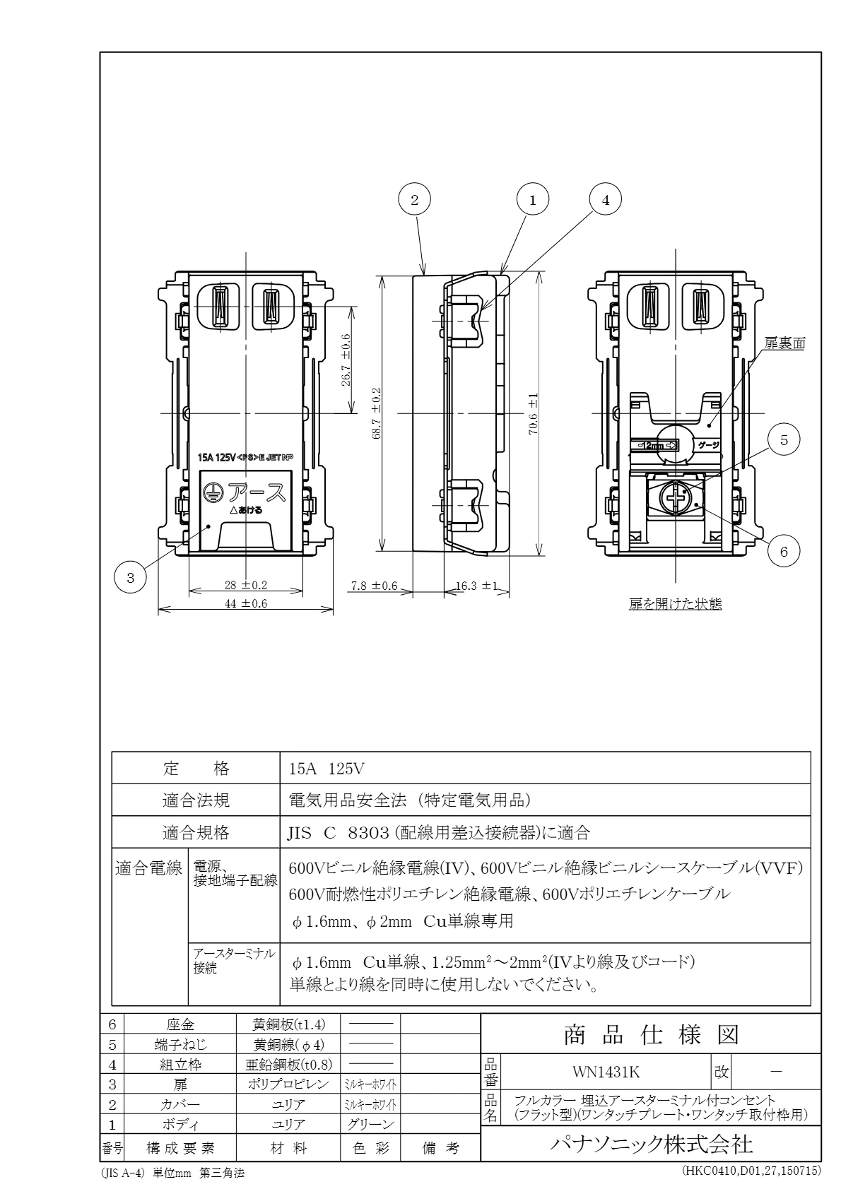 - 電設資材 > パナソニック(Panasonic) > フルカラー配線器具 > コンセント > アースターミナル付