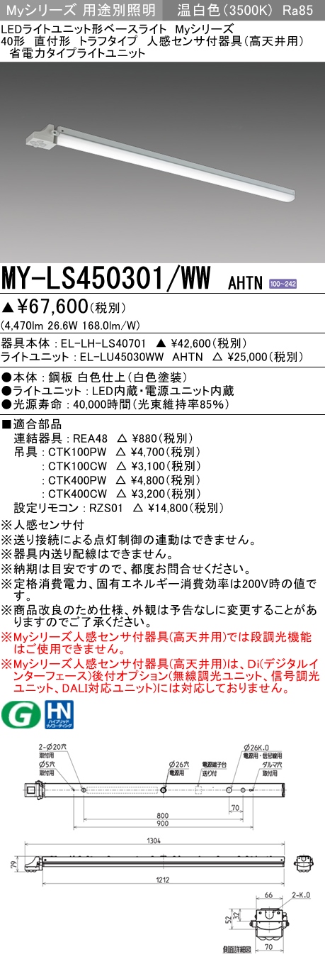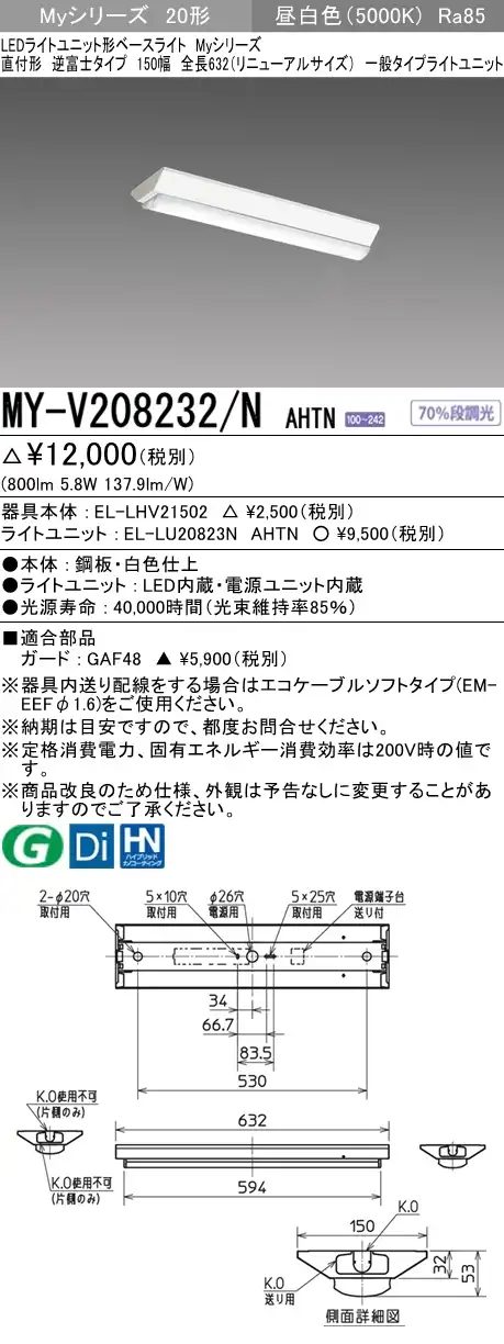 MY-V208432/N AHTN 逆富士形(V形)照明器具 150幅 全長632 FL20x1相当 昼白色