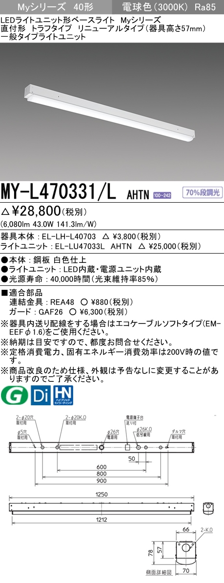 MY-L470331/L AHTN トラフ形照明器具 器具高さ57mm FHF32(高出力)x2相当 電球色