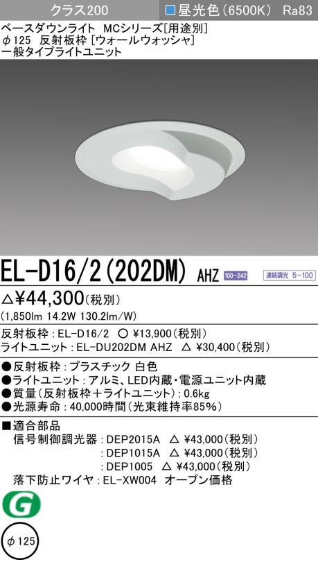 固有エネルギー消費効率(lm/w):140.4(200V時)