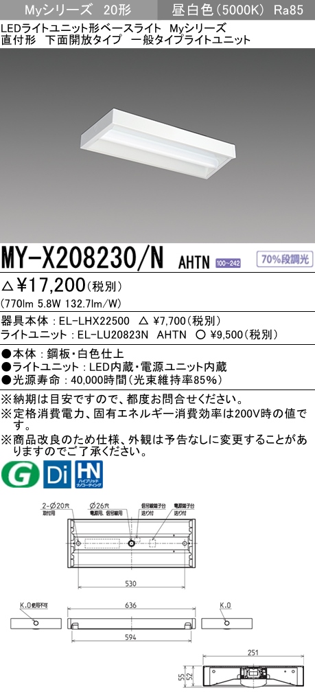 MY-X208230/N AHTN 直付下面開放形照明器具 FL20x1相当 昼白色