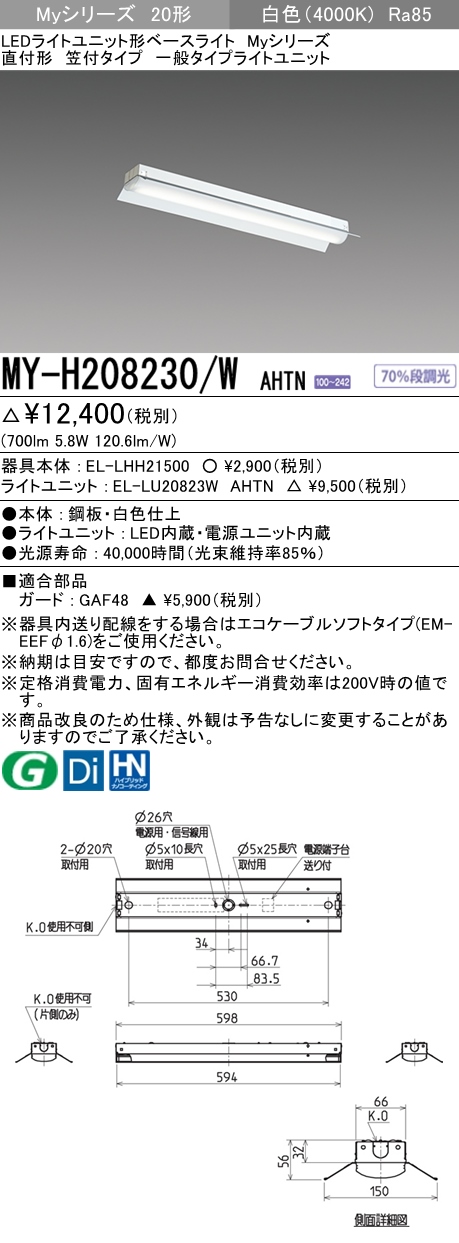 MY-H208430/W AHTN 笠付形照明器具 FL20x1相当 白色