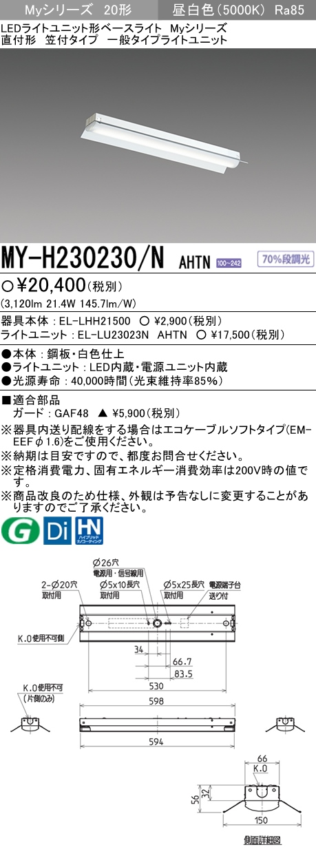MY-H230430/N AHTN 笠付形照明器具 FHF16x2相当 昼白色