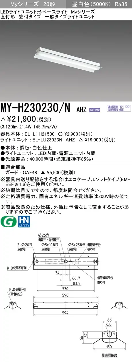 固有エネルギー消費効率(lm/w):145.7(200V時)