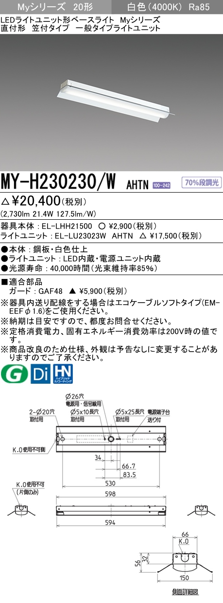 MY-H230430/W AHTN 笠付形照明器具 FHF16x2相当 白色