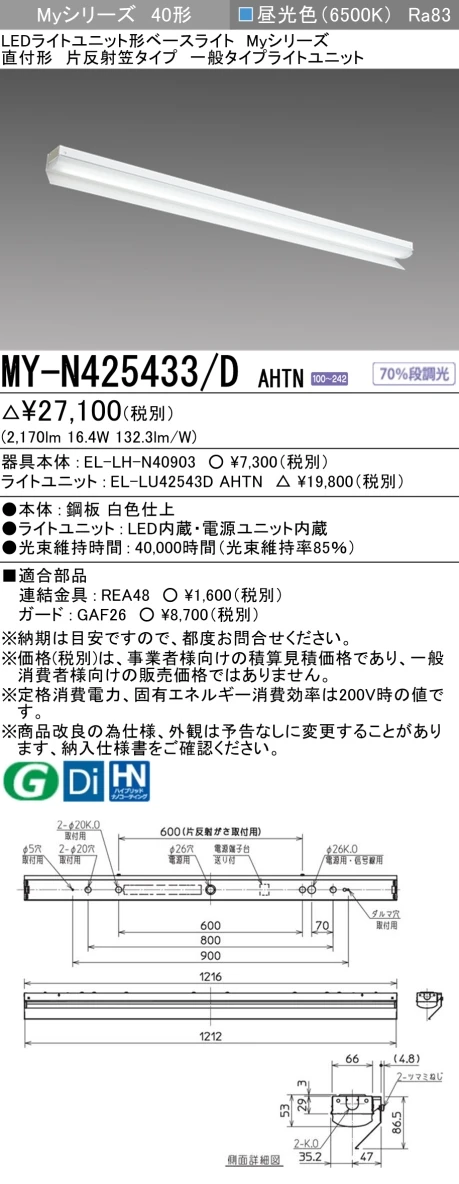 MY-N425433/D AHTN 片反射笠形照明器具 FHF32(定格)x1相当 昼光色
