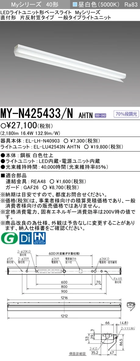 MY-N425433/N AHTN 片反射笠形照明器具 FHF32(定格)x1相当 昼白色