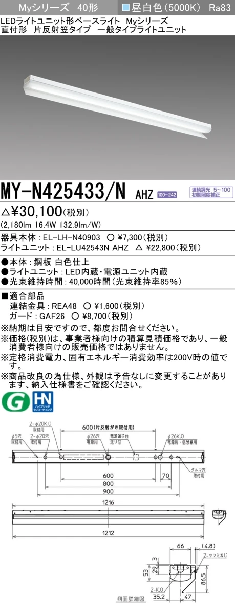 MY-N425433/N AHZ 片反射笠形照明器具 FHF32(定格)x1相当 昼白色 調光タイプ