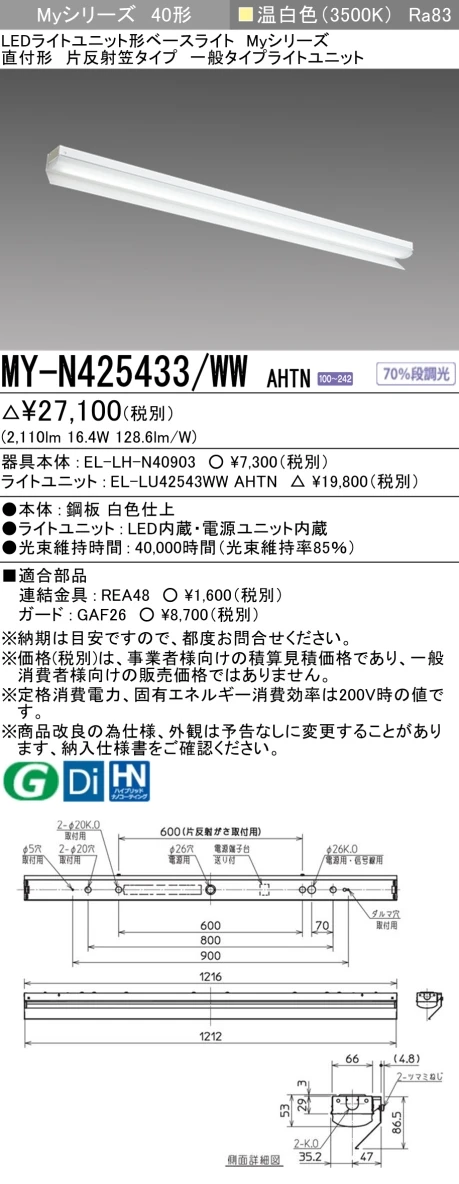 MY-N425433/WW AHTN 片反射笠形照明器具 FHF32(定格)x1相当 温白色