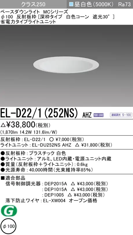 固有エネルギー消費効率(lm/w):143.9(200V時)