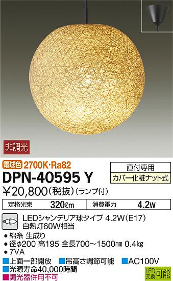 DPN-40595Y 和風ペンダント  非調光 電球色 320lm