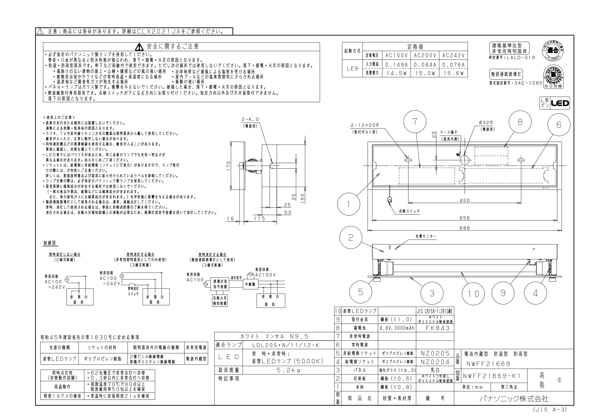 ◆非常灯評定番号:LALD-019【交換電池】FK843