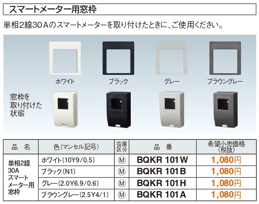BQKR101A 単相2線30Aスマートメーター用窓枠 WHM取付ボックス窓枠(ブラウングレー)