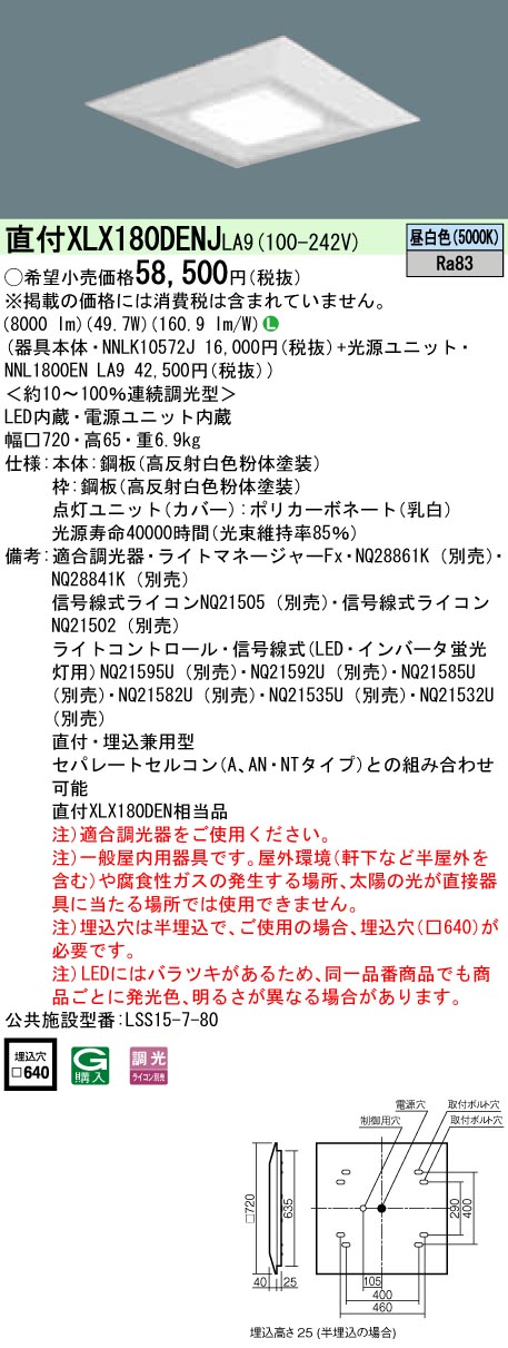 【器具本体】NNLK10572J 16000 円(税抜)【光源ユニット】NNL1800EN LA9 42500 円(税抜)