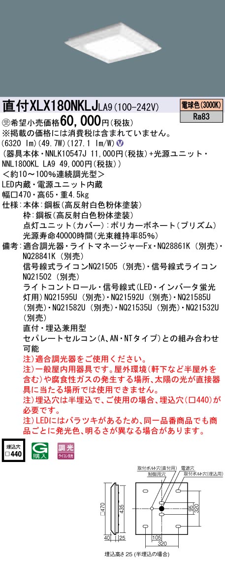 【器具本体】NNLK10547J 11000 円(税抜)【光源ユニット】NNL1800KL LA9 49000 円(税抜)