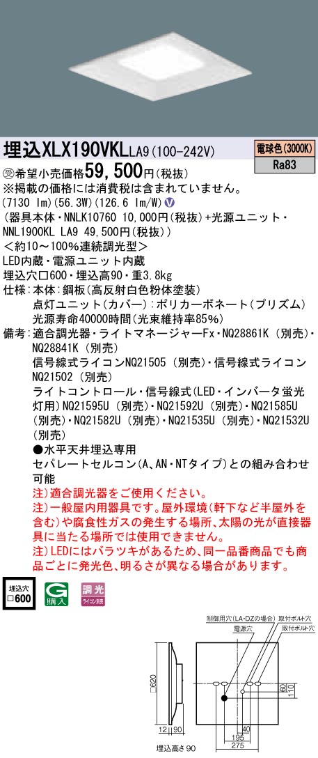 【器具本体】NNLK10760 10000 円(税抜)【光源ユニット】NNL1900KL LA9 49500 円(税抜)