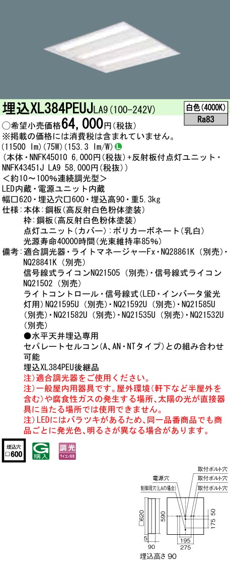 【本体】NNFK45010 6000 円(税抜)【反射板付点灯ユニット】NNFK43451J LA9 58000 円(税抜)
