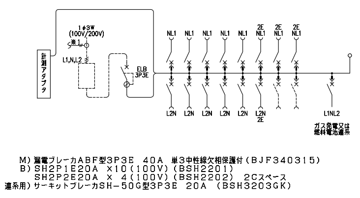 - HEMS分電盤 > マルチ通信型 > 燃料電池(ガス発電)システム対応 > リミッタースペース付 > 主幹40A