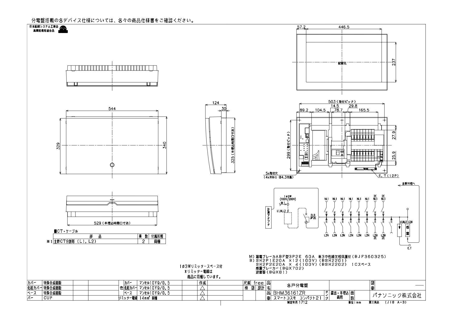 - HEMS分電盤 > マルチ通信型 > 地震かみなりあんしんばん > リミッタースペース付 > 主幹60A