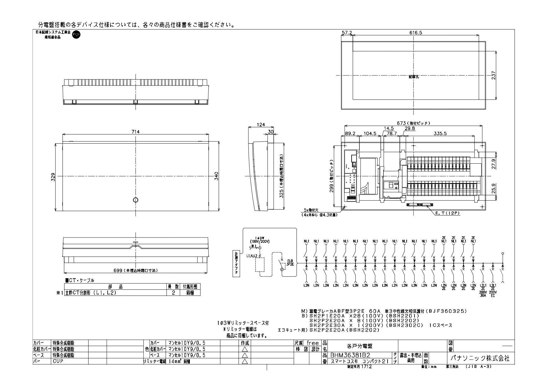 BHM36381B2 HEMS分電盤 マルチ通信型 エコキュート・IH対応 LS付 主幹60A 分岐38+1