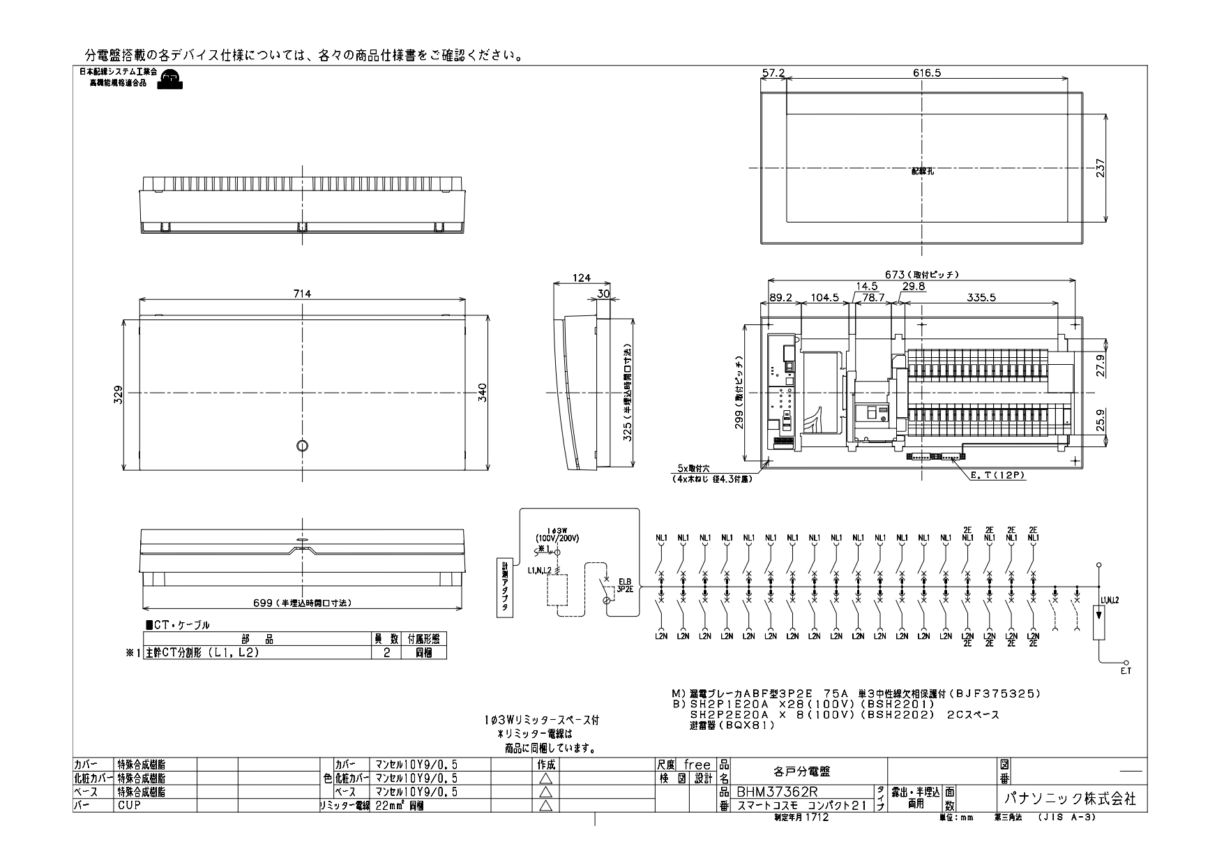 - HEMS分電盤 > マルチ通信型 > かみなりあんしんばん > リミッタースペース付 > 主幹75A