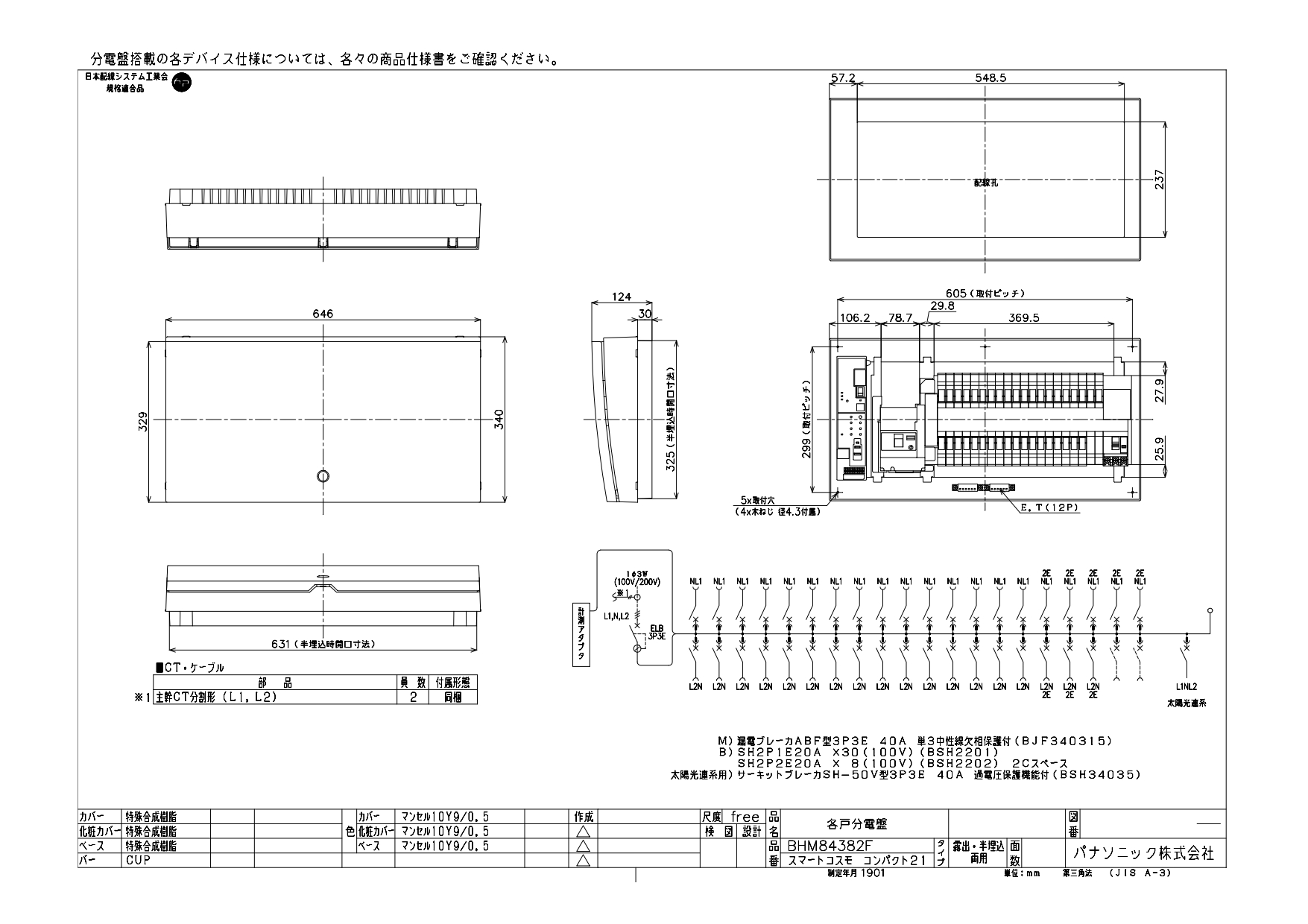 BHM84382G HEMS分電盤 マルチ通信型 燃料電池(ガス発電)システム対応 LSなし 主幹40A 分岐38+2