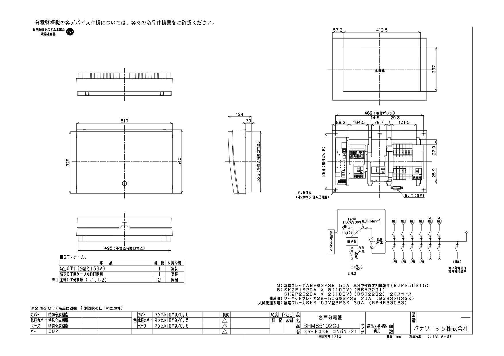 BHM85102GJ HEMS分電盤 マルチ通信型 ダブル発電対応 LSなし 主幹50A  分岐10+2