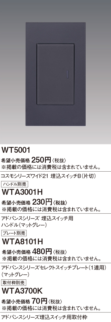WTA3001H アドバンスシリーズ 埋込スイッチ用ハンドル 表示なし・ネーム無し マットグレー