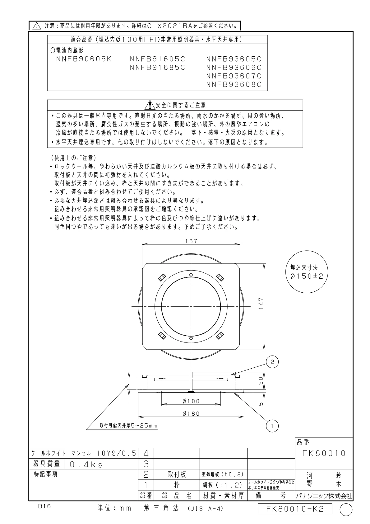 ![[6枚在庫あり]FK80010 リニューアルプレート 埋込穴φ100(適応埋込穴径φ150) 電池内蔵形非常用照明器具専用型用](/html/upload/save_image/FK80010.webp)
